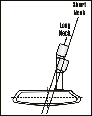 센터 넥이라함은 실제로는 헤드의 중앙(센터 샤프티드, Center-Shafted)에 꼽힌 것을 의미한다. (Source - www.hirekogolf.com)