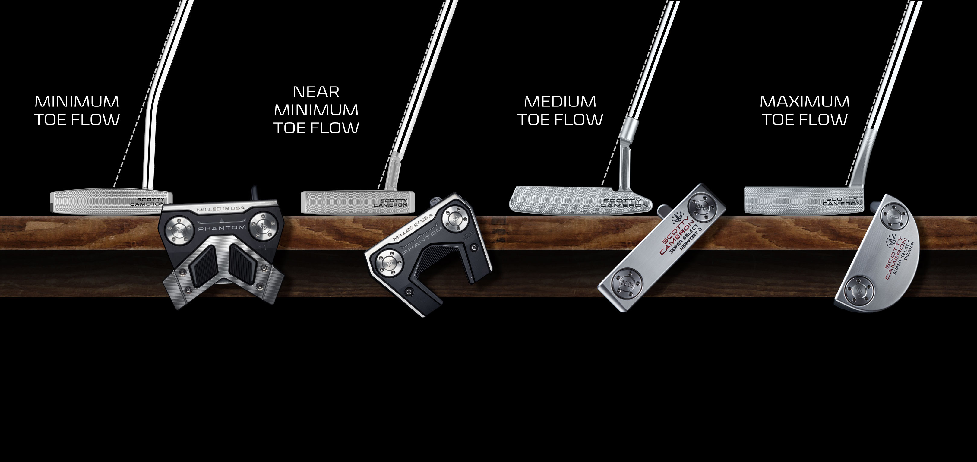 이러한 요소들을 고려하여 내게 가장 적절한(편안한) 스트로크 형태를 찾고 그에 맞는 퍼터를 찾는 것이 중요합니다. 그리고 그 접점은 필자는 토우 행(Tow Hang)과 토우 플로우(Toe Flow)라고 생각합니다. 아치형의 스트로크와 스트레이트형의 스트로크는 퍼터의 토우 부분의 플로우에 따라 구분이 됩니다.