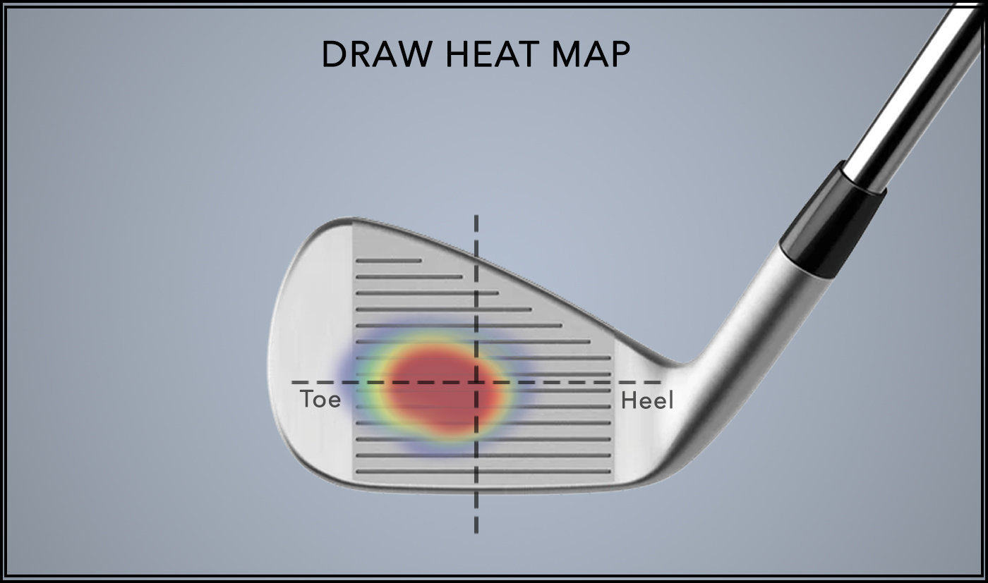 드로우 샷의 클럽 페이스의 임팩트 지점을 살펴보면 페이스의 중심보다 다소 토 쪽에 형성되고 있음을 확인할 수 있습니다. 임팩시 약간은 오픈된 클럽 페이스와 인투아웃의 클럽패스, 그에 따른 기어 효과로 인하여 좌측 백스핀으로 인해 드로우 구질이 형성됩니다. 아래는 스윙궤도까지 같이 살펴볼 수 있는 심플한 그림입니다. 클럽헤드가 몸 뒤쪽으로 많이 떨어지며 낮은 상태에서 인투아웃의 패스가 형성됩니다.