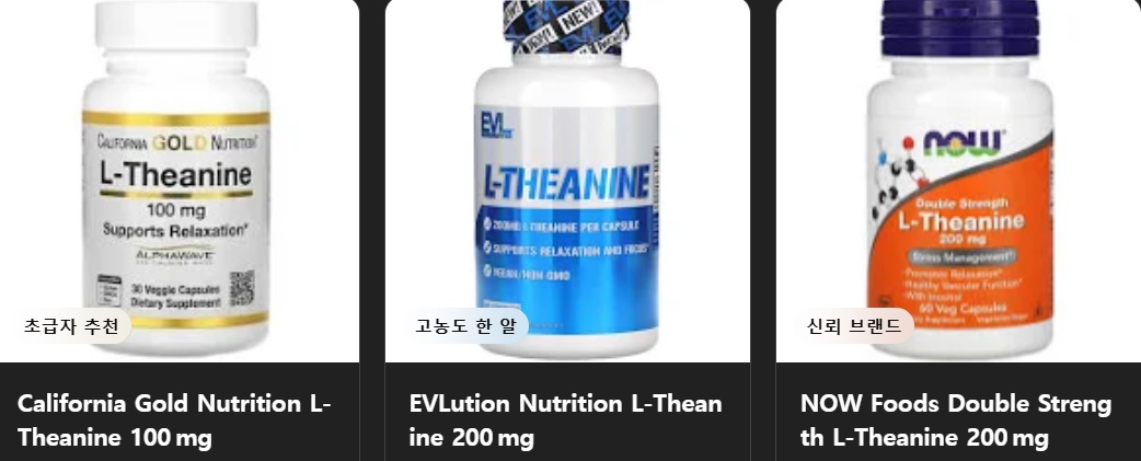 1) California Gold Nutrition L‑Theanine 100 mg -->링크