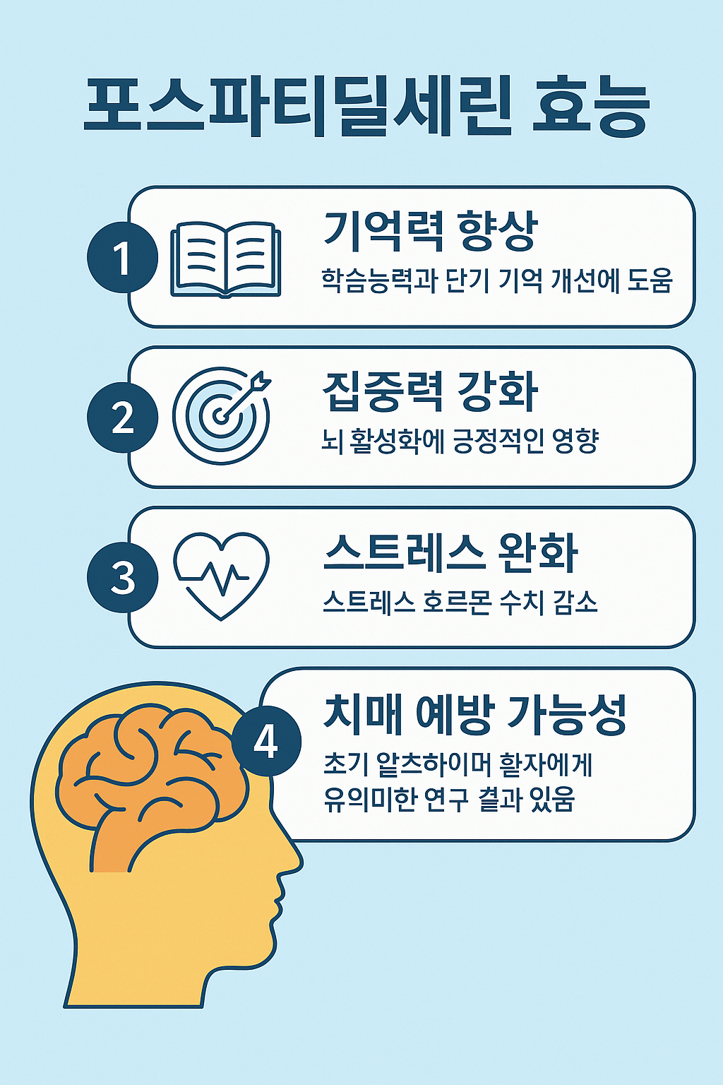 - 기억력 향상: 학습능력과 단기 기억력 개선에 도움