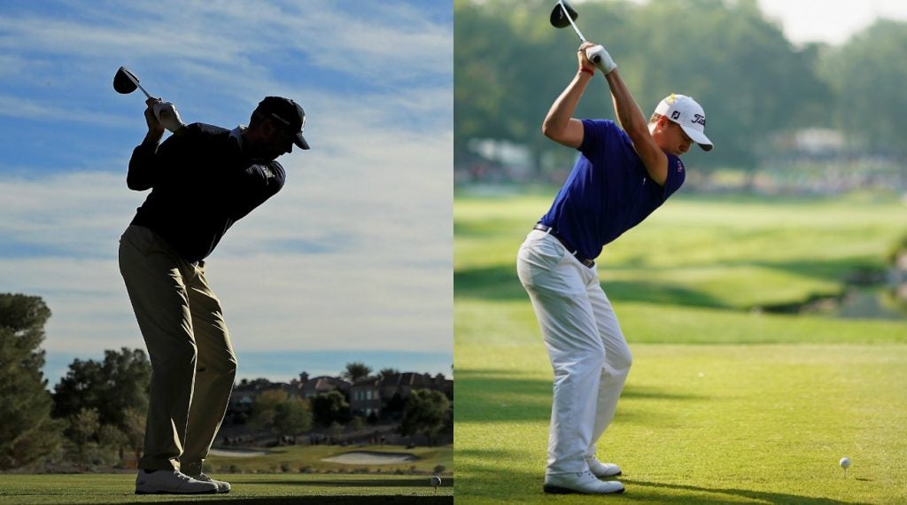 클럽은 우리 몸 앞에서 대각선으로 경사진 평면으로 내려갑니다. 이 경사를 0으로 만들면 클럽헤드가 관람차처럼 수직 평면(수직에서 0°)으로 움직이게 되겠지요. 수직에서 최대 30°까지의 반경으로(즉 수직 또는 수직에 가까운 탑) 경사진 클럽의 평면은 시속 90마일의 속도로 내려오는 경우 약 800°/s의 속도로 ROC에 기여합니다. 샤프트 축을 비교적 평평한 45°까지 돌리면(즉, 탑을 약간 낮추면) ROC 기여도가 1200°/s로 증가합니다. 즉 ROC로만 본다면 플랫한 스윙 궤도에서 더 높은 수치가 나온다는 것을 알 수 있습니다. 스윙의 피치(높낮이)를 변경하는 데에는 이유가 있을 수 있지만, 특히 ROC를 줄이기 위해 이 방법을 사용하는 것을 우선적으로는 추천드리지 않습니다. 투어 선수들은 드라이버가 수직에서 40도에서 45도 사이인 비교적 비슷한 수직 스윙 기울기를 가지고 있는 경향이 있으며, 대부분의 아마추어들은 이미 너무 수직이기 때문입니다.